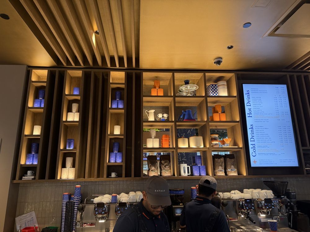 Drawing inspiration from Italy’s renowned coffee bar culture, Eataly Caffè offers a vibrant experience with a menu featuring expertly crafted espresso drinks, freshly baked pastries, indulgent gelato, and savory delights like Roman-style pizza alla pala.