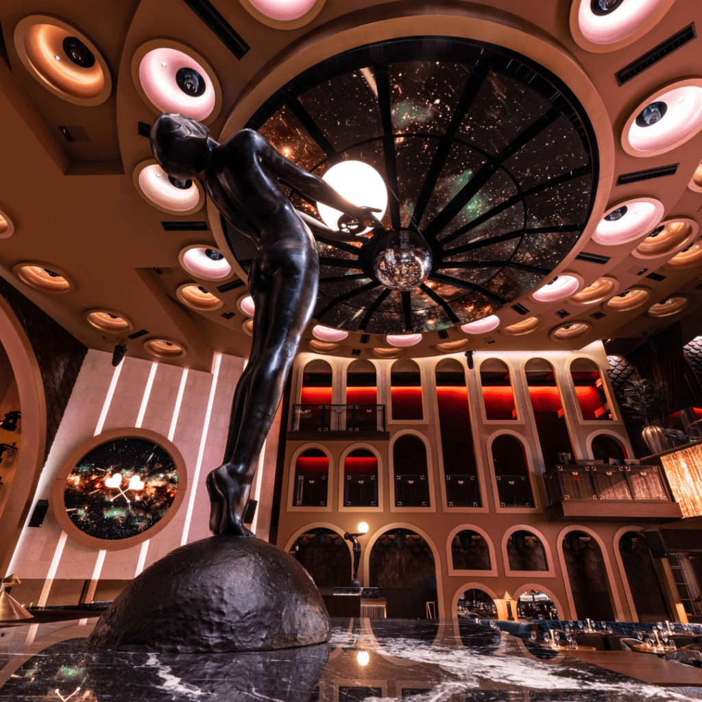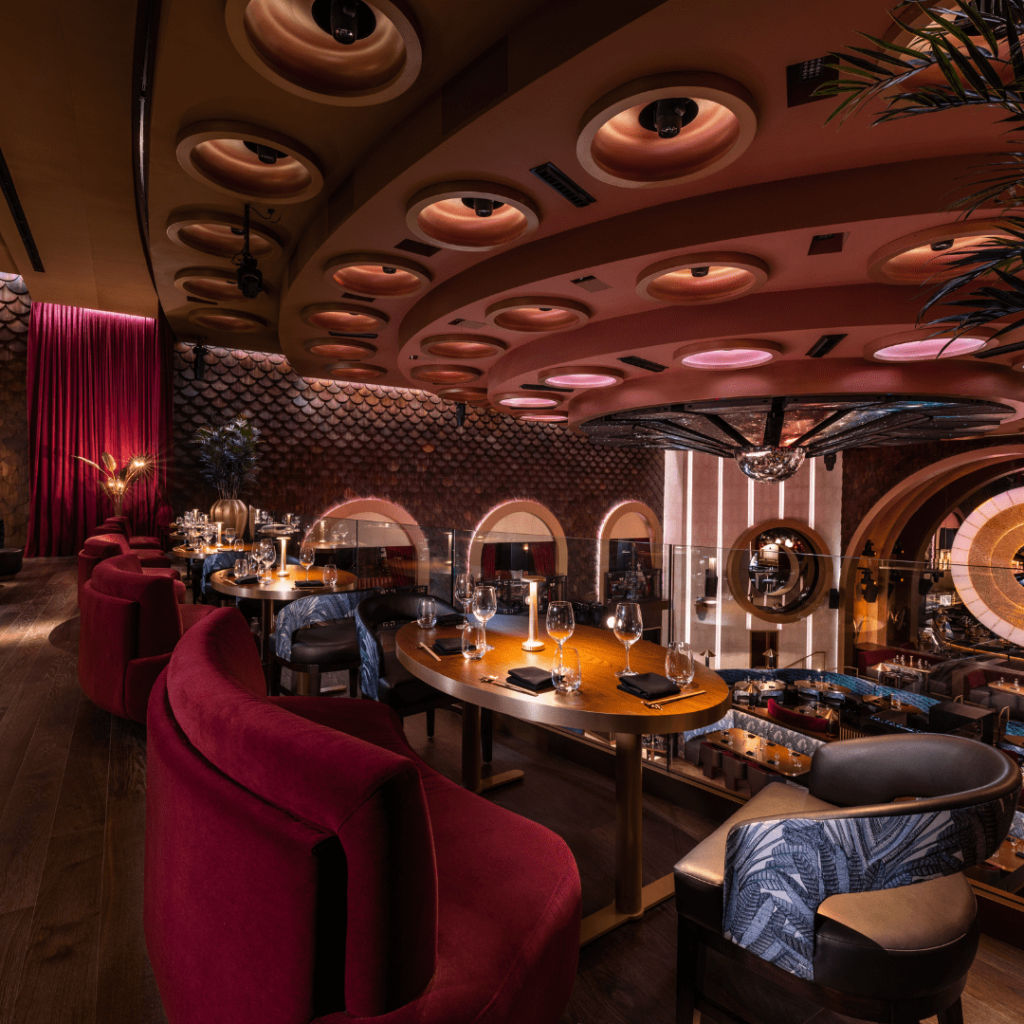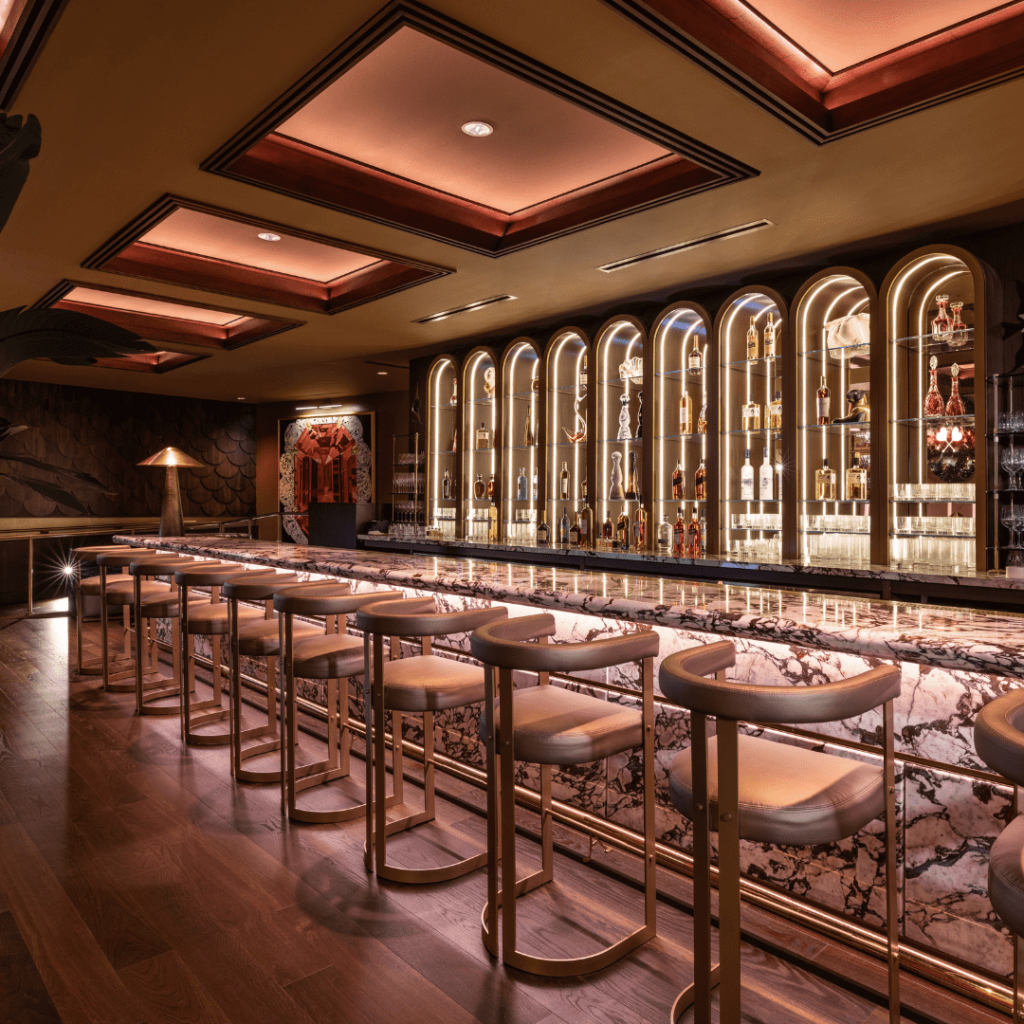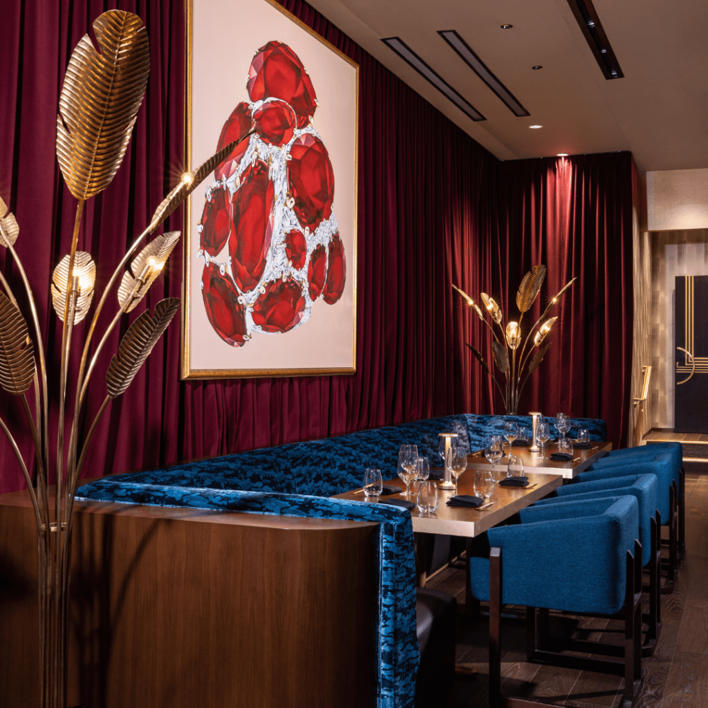 Every element in Queen signals that guests have arrived in Miami. Designed to see and be seen, everything becomes a spectacle, a moment, an orchestrated dance of space and depth, textures and context, lighting and sound. Inspired by the halcyon days of twentieth-century European supper clubs, Queen is a high energy dining destination with world class art, entertainment and cuisine. From the Lobmyer chandeliers in the arrival hall to the state-of-the-art sound and lighting system, every element of Queen is designed to carry you on a sensory journey