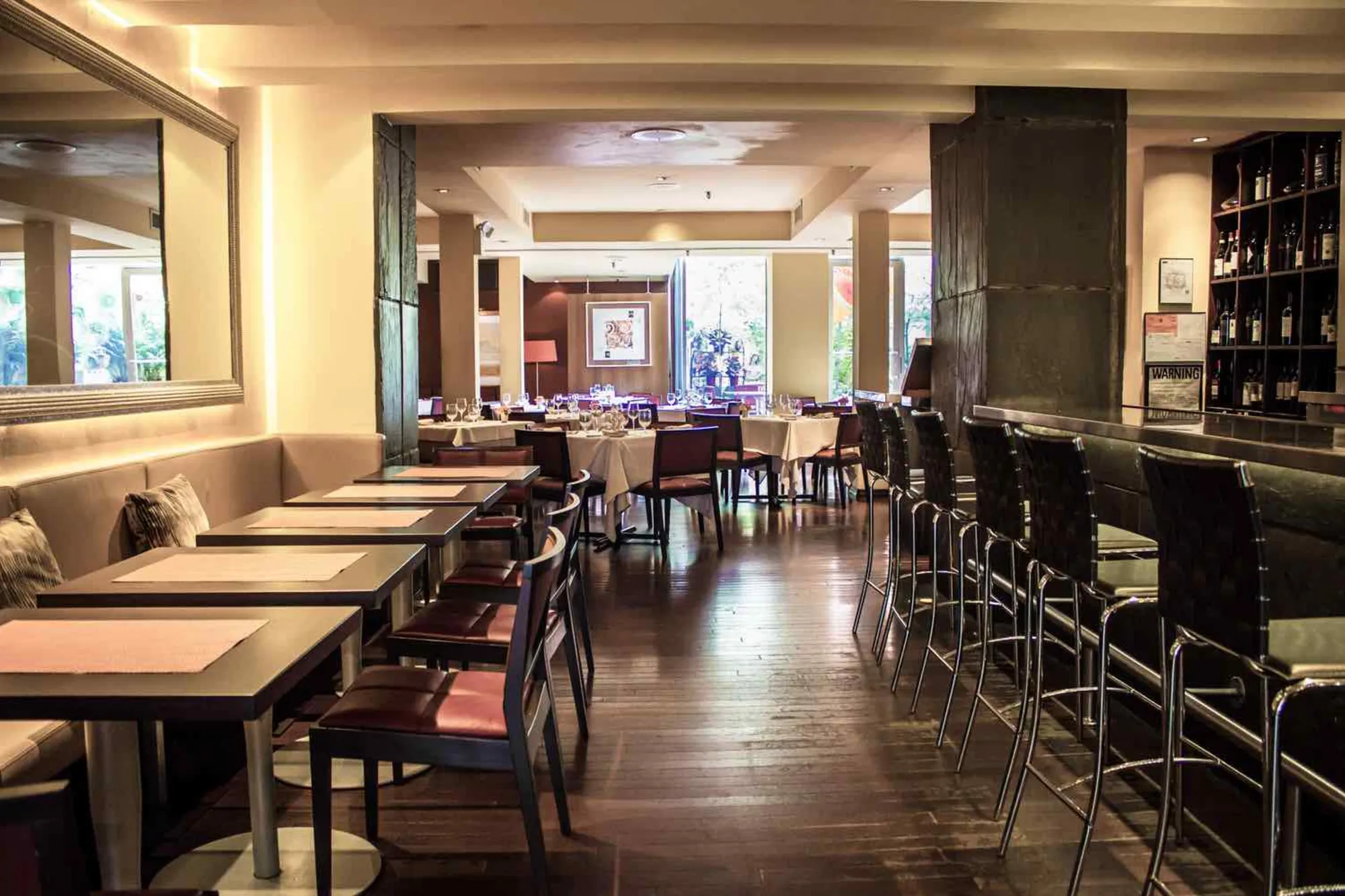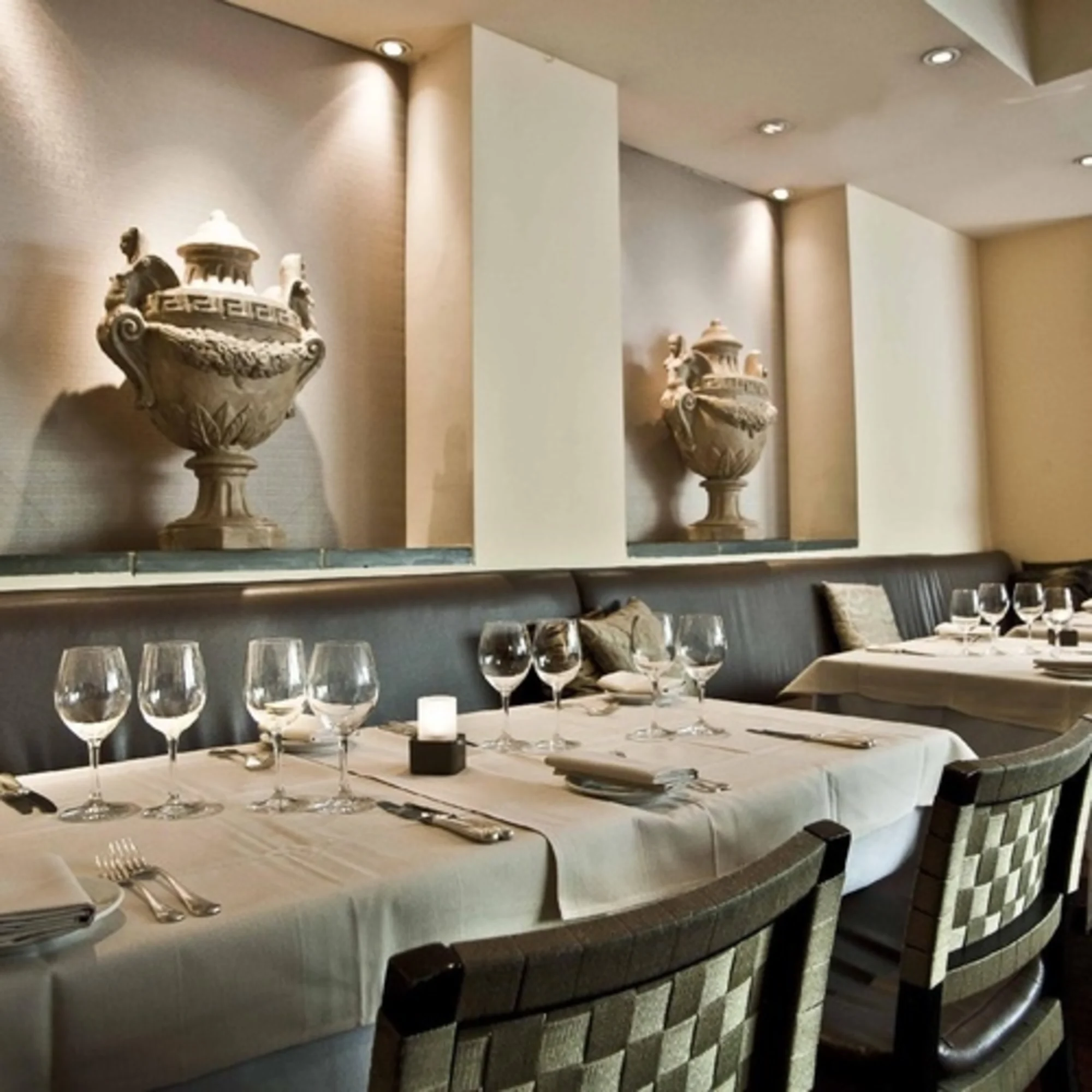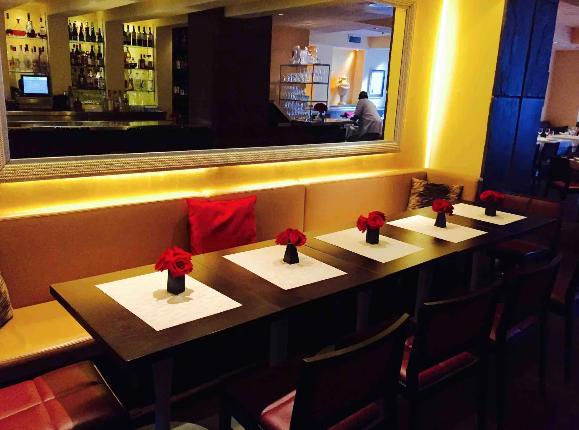 ViceVersa is a vibrant Theatre District staple. Here, you will find a delightful back patio and a sleek interior with top notch cuisine. Clean lines and white tablecloths make this an elegant spot for a pre-theater dinner. Natural tones fill the space and accents of red make give a pop of color. Chef Stefano Terzi makes all of his pastas from scratch and values each individual ingredient.